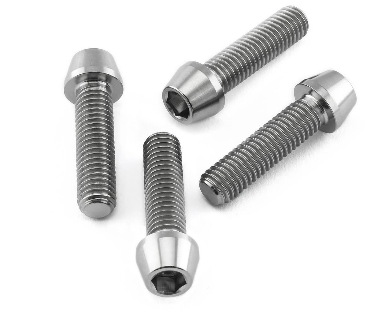 Viti in Titanio 6AL-4V (grado 5), Inossidabili leggerissime (-40% in peso sull'originale), con filetto rullato - eccellente robustezza e qualita' .