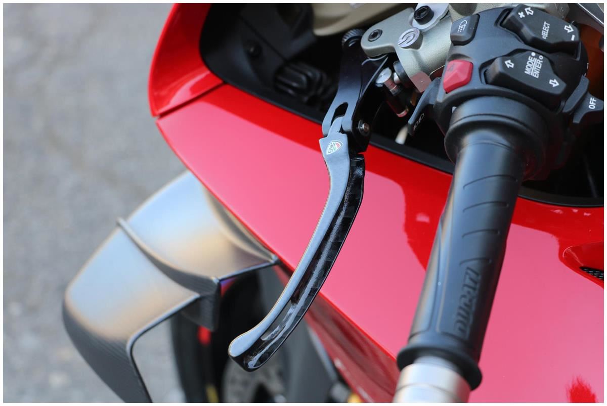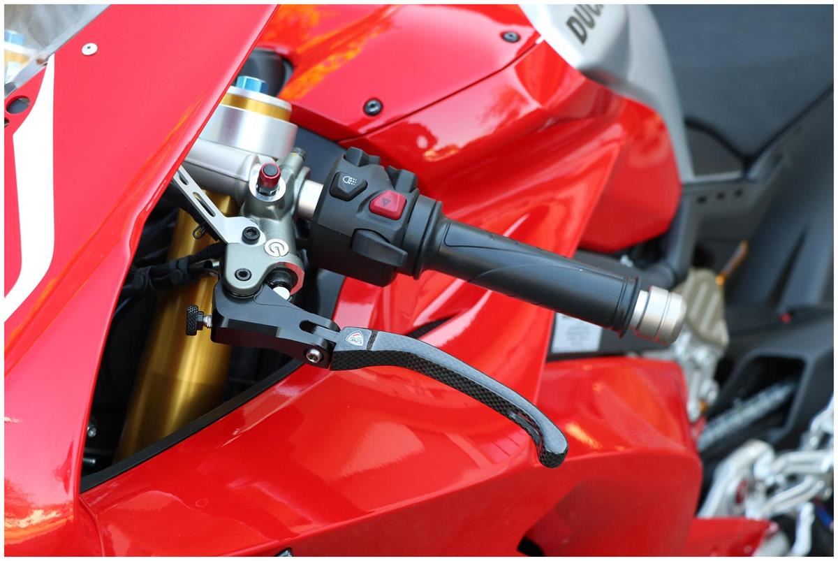 Perfettamente compatibili con le pompe frizione originali, le leve Race Carbon hanno l'attacco in alluminio lavorato dal pieno con successiva anodizzazione della superfice e viteria in acciaio, mentre la leva snodabile è interamente realizzata in fibra di carbonio. La leva ribaltabile previene la rottura in caso di caduta.