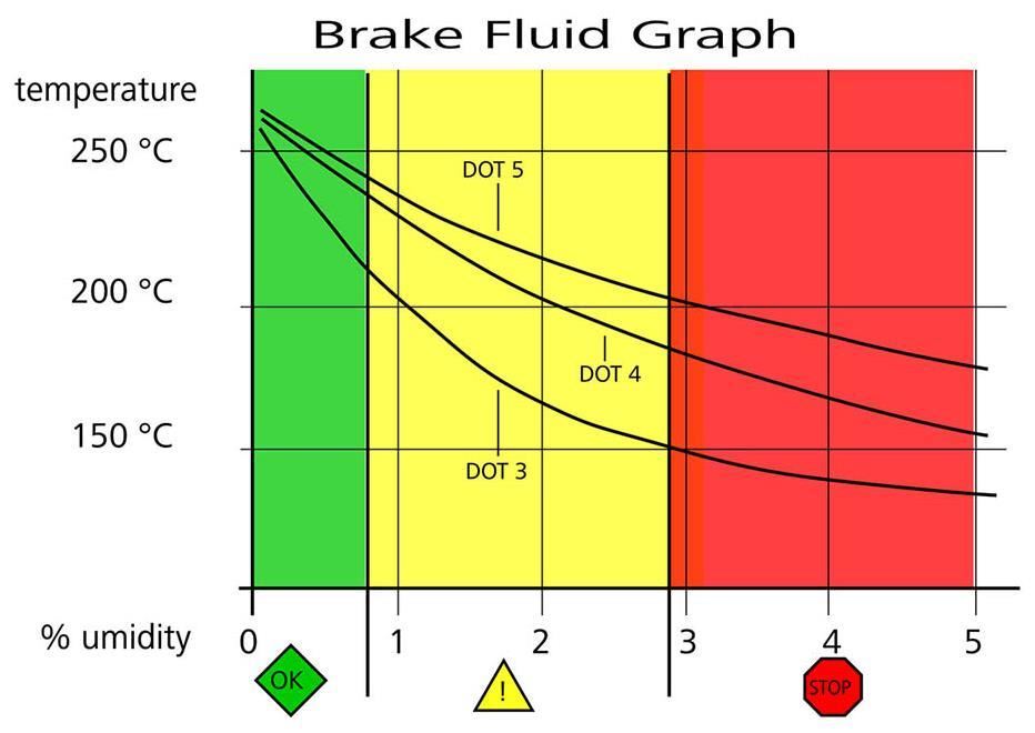 Queste temperature dipendono dalla continuità e dall’intensità dell’azione frenante, infatti il liquido ha un range di temperatura di lavoro che va da circa - 40C° a ben oltre 200C°, quindi maggiore sarà il punto di ebollizione migliore sarà la caratteristica del liquido.