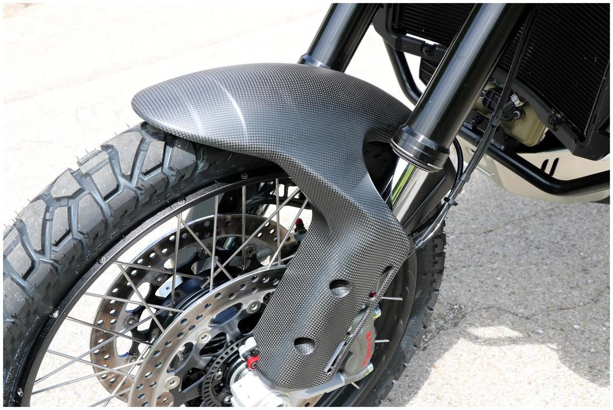 Parafango anteriore Ducati DesertX realizzato in carbonio trama plain con lavorazione in autoclave.