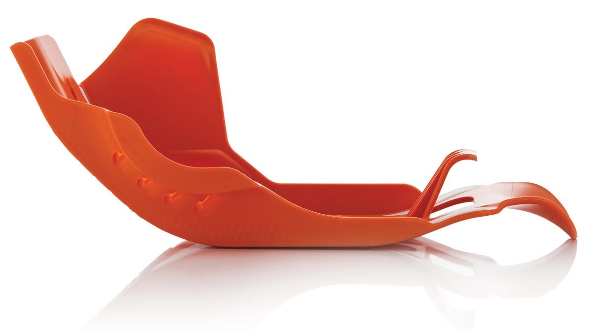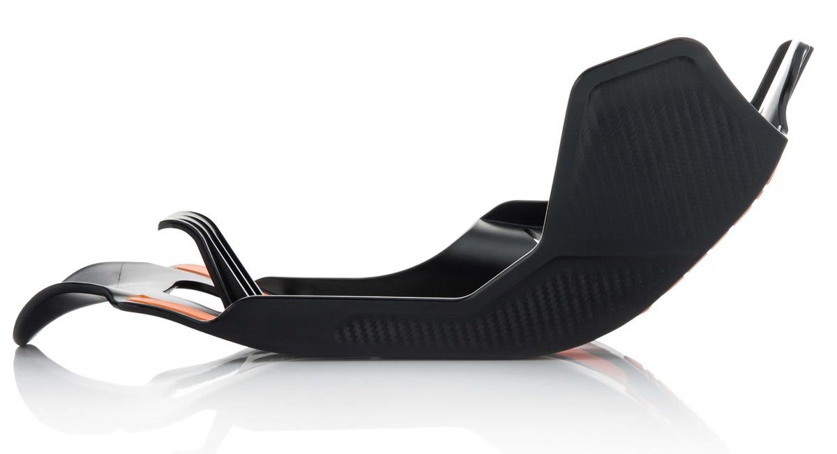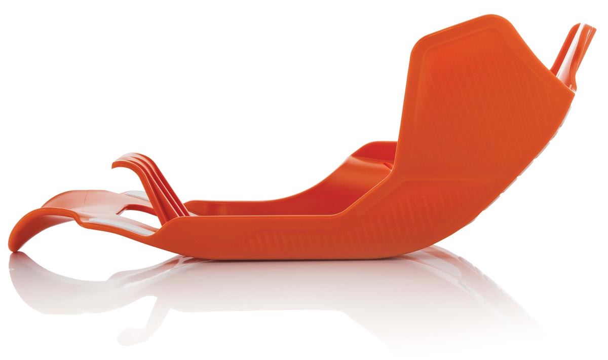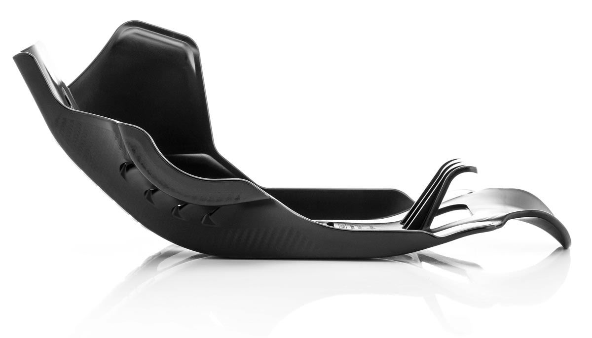 Ovviamente non stiamo parlando di "normale" plastica, ma di materiali altoresistenziali che garantiscono maggiore leggerezza rispetto ai paramotori in alluminio e una maggiore elasticità durante l'assorbimento dei colpi se paragonati a quelli in carbonio. Da non sottovalutare anche la possibiltà di avere diversi colori e finiture, dal grigio metallizzato all'orange KTM, potendo coprire anche esigenze specifiche di un team o di un produttore.