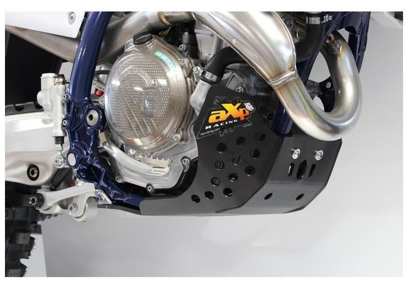 Questa piastra paramotore di AXP soddisfa pienamente le esigenze dettate dalla pratica dell’enduro non estremo e del motocross, ove la parte inferiore e le parti frontali dei carter della moto sono spesso a contatto con il terreno e devono proteggere da contatti accidentali o proiezioni di sassi e terra.