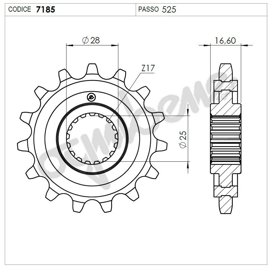 La prima foto è indicativa, mentre la seconda foto è il disegno tecnico dove sono indicate tutte le misure per confrontarle eventualmente con la corona o il pignone in proprio possesso.