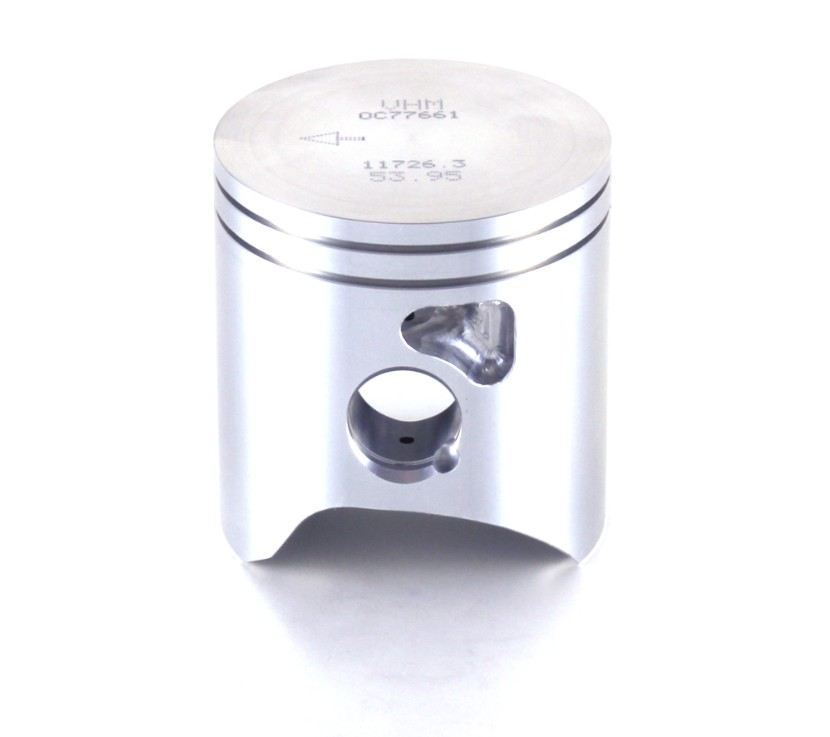 I pistoni VHM, a differenza di tutti gli altri produttori, sono completamente ricavati dal pieno con macchine CNC (a controllo numerico) da billette di materiale di alta qualità, che vengono selezionate attentamente prima di essere sottoposte a lavorazione. I pistoni hanno una particolare forma ellittica, questo riduce i grippaggi del motore, la canna del pistone non si usura e fornisce un'ottima conduzione termica.