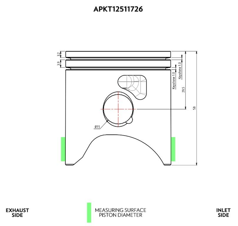 Pistone Vertex maggiorato per cilindro 58.00 BB monofascia per KTM 125 SX 07-17