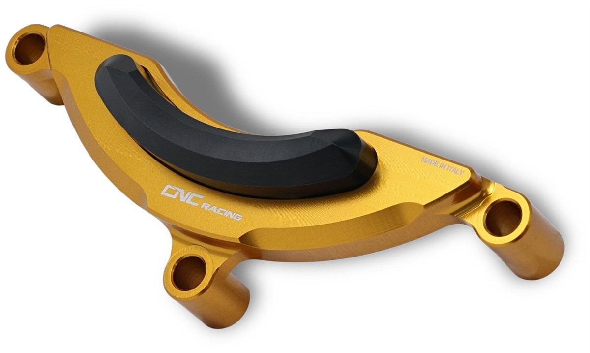 Protezione coperchio generatore lavorato dal pieno in lega leggera con successivo trattamento di anodizzazione superficiale. Protegge in caso di accidentale caduta o scivolata grazie all'inserto in plastica presente, garantisce protezione durante lo sfregamento con asfalto o di battuta a terra.