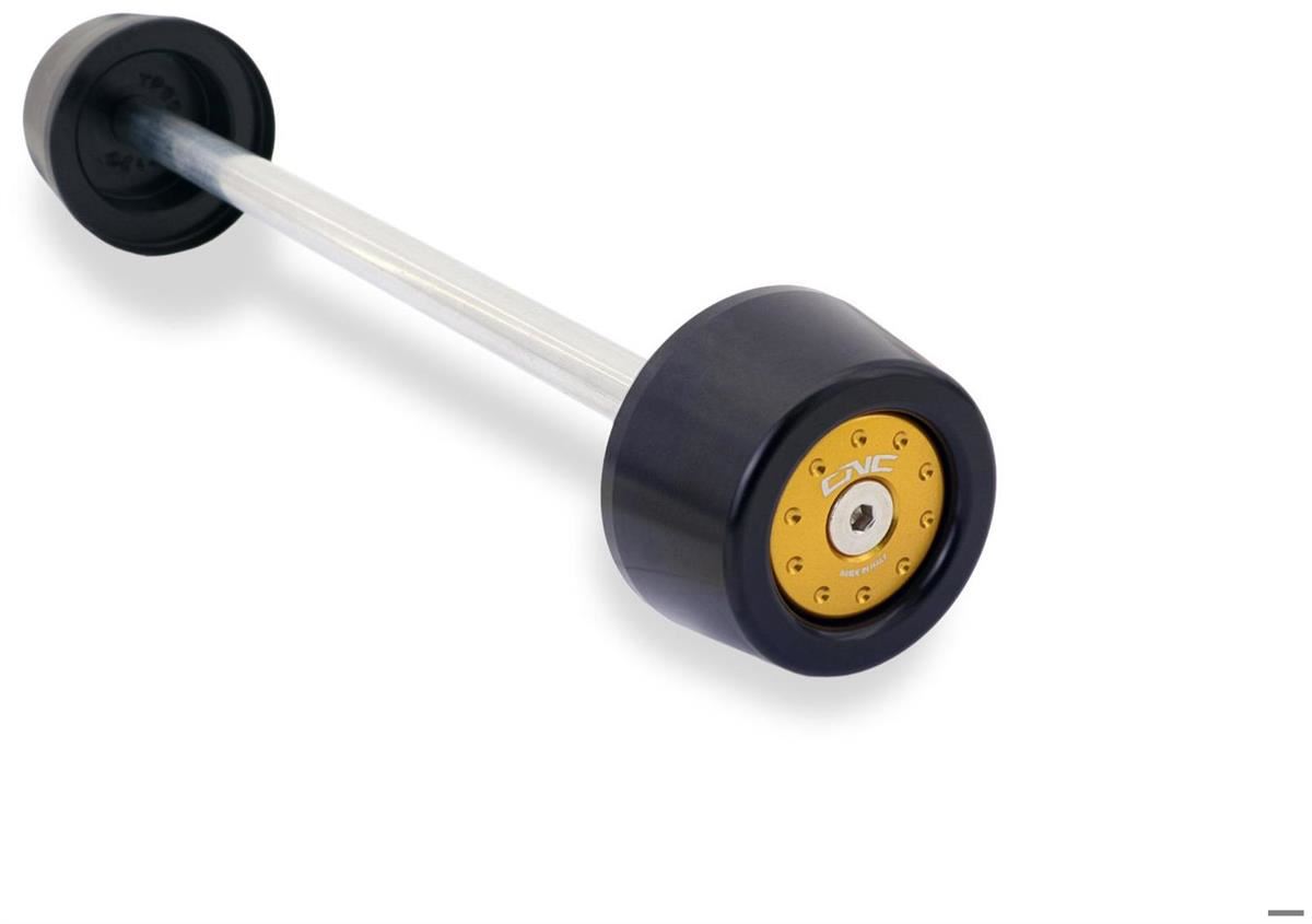Tamponi ruota realizzati dal pieno in materiale plastico e lega leggera. Proteggono le forcelle e forcellone da accidentali cadute o scivolate e conferiscono alla moto un design più sportivo.
