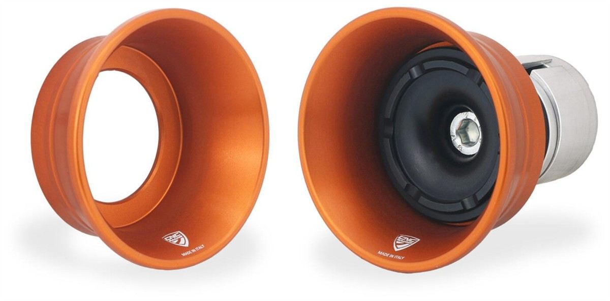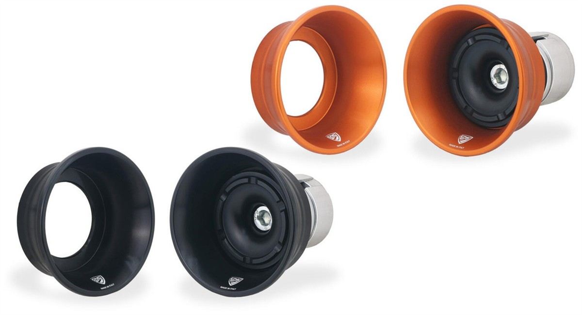 Proteggono le forcelle da accidentali cadute o scivolate e conferiscono alla moto un design più sportivo.