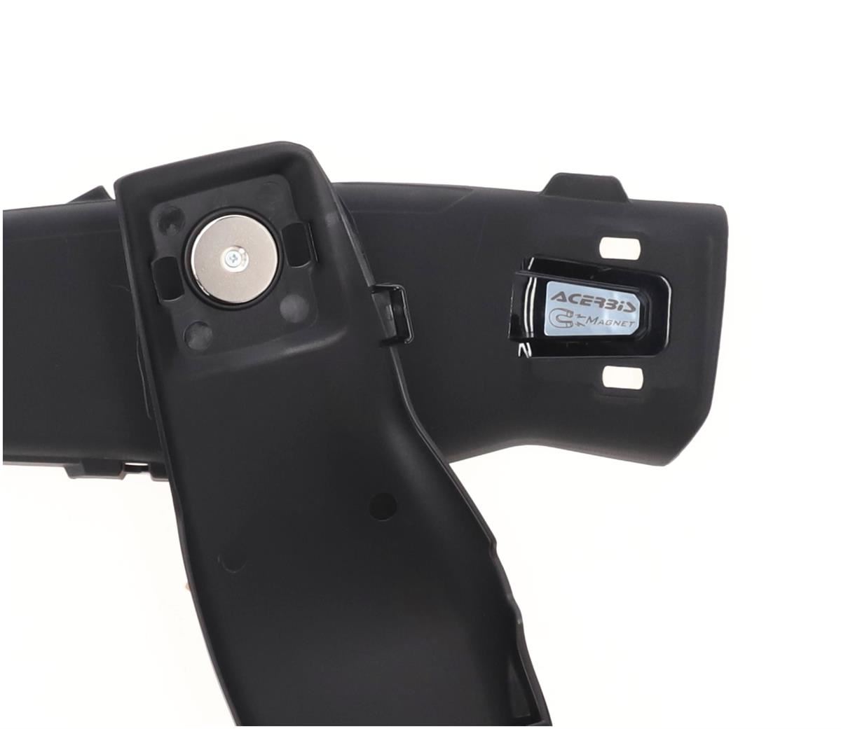 Protezione forcellone ACERBIS TEKETMAGNET in materiale plastico altoresistenziale. La funzione principale del Teket magnet è quella di proteggere il forcellone della moto da urti con ostacoli esterni come sassi, canali, ecc, che causano rigature profonde e/o graffi sul forcellone. Il fissaggio avviene tramite magneti ed elastici, e permette in pochi secondi una rapida rimozione delle protezioni dal forcellone ogni qual volta si voglia provvedere al lavaggio e/o alla manutenzione del forcellone stesso. Rimontaggio intuitivo ed immediato in pochi secondi.