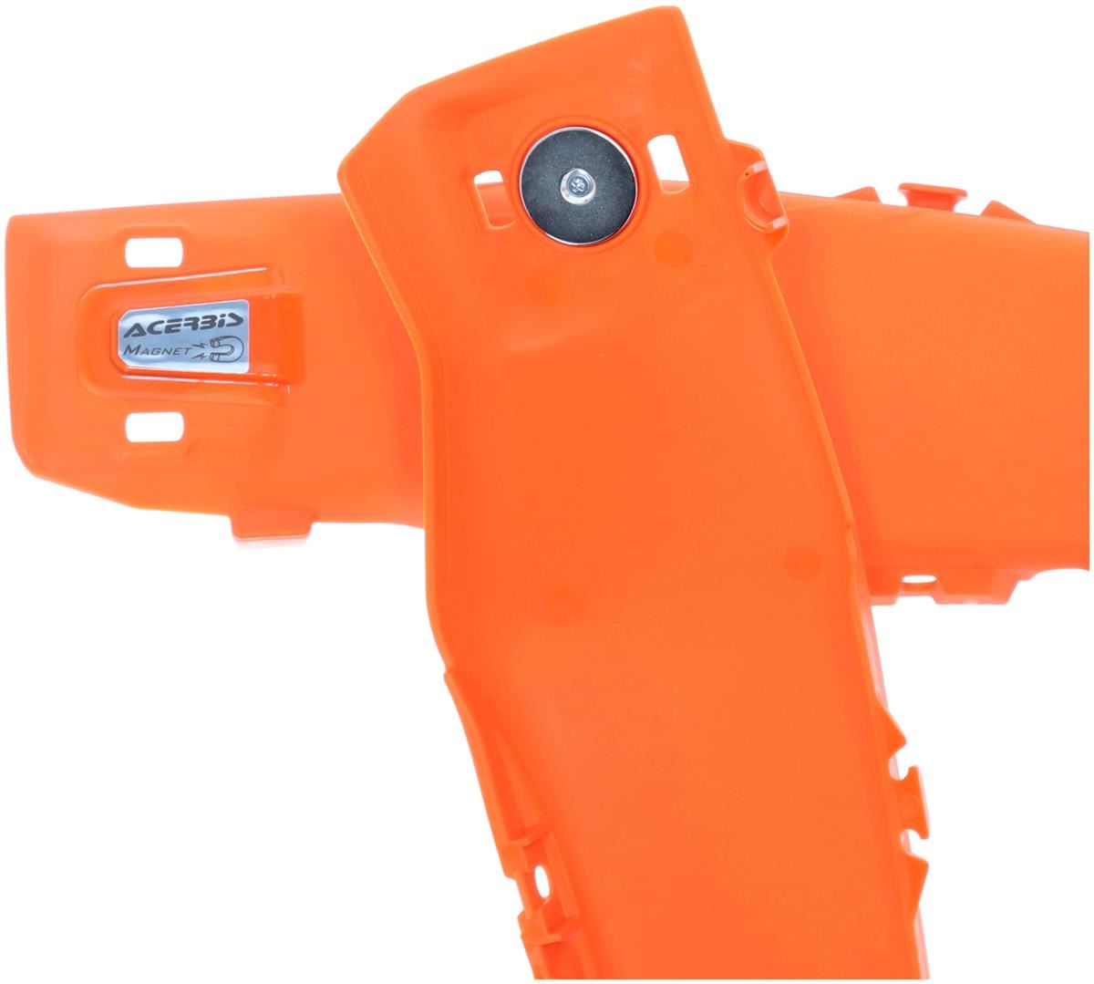 Protezione forcellone ACERBIS TEKETMAGNET in materiale plastico altoresistenziale. La funzione principale del Teket magnet è quella di proteggere il forcellone della moto da urti con ostacoli esterni come sassi, canali, ecc, che causano rigature profonde e/o graffi sul forcellone. Il fissaggio avviene tramite magneti ed elastici, e permette in pochi secondi una rapida rimozione delle protezioni dal forcellone ogni qual volta si voglia provvedere al lavaggio e/o alla manutenzione del forcellone stesso. Rimontaggio intuitivo ed immediato in pochi secondi.