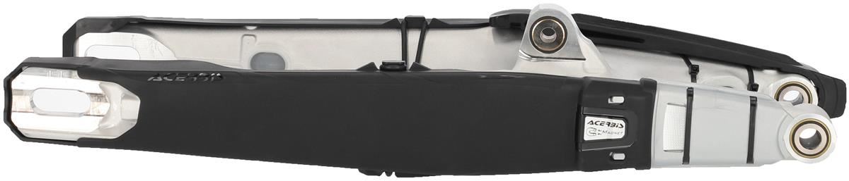 Protezione forcellone ACERBIS TEKETMAGNET in materiale plastico altoresistenziale. La funzione principale del Teket magnet è quella di proteggere il forcellone della moto da urti con ostacoli esterni come sassi, canali, ecc, che causano rigature profonde e/o graffi sul forcellone. Il fissaggio avviene tramite magneti ed elastici, e permette in pochi secondi una rapida rimozione delle protezioni dal forcellone ogni qual volta si voglia provvedere al lavaggio e/o alla manutenzione del forcellone stesso. Rimontaggio intuitivo ed immediato in pochi secondi.