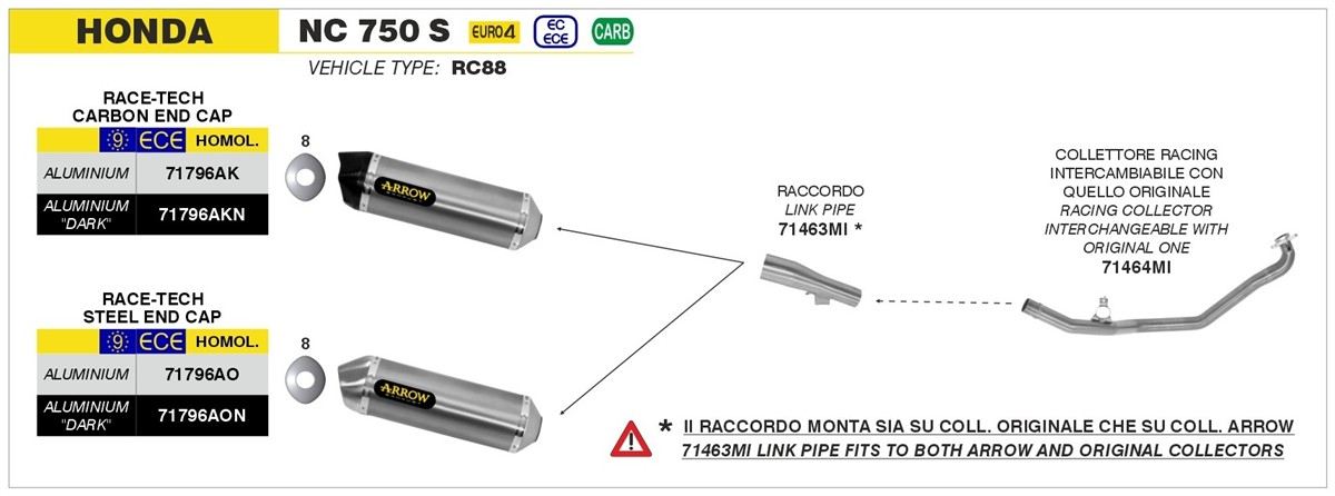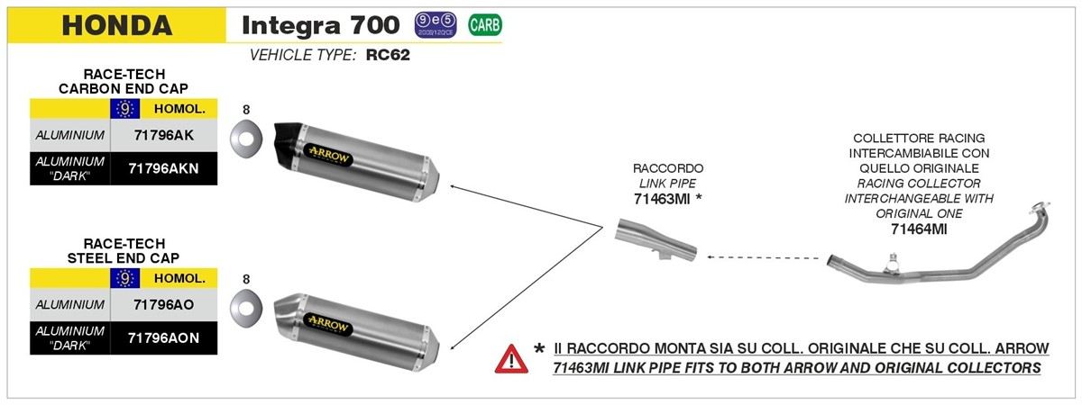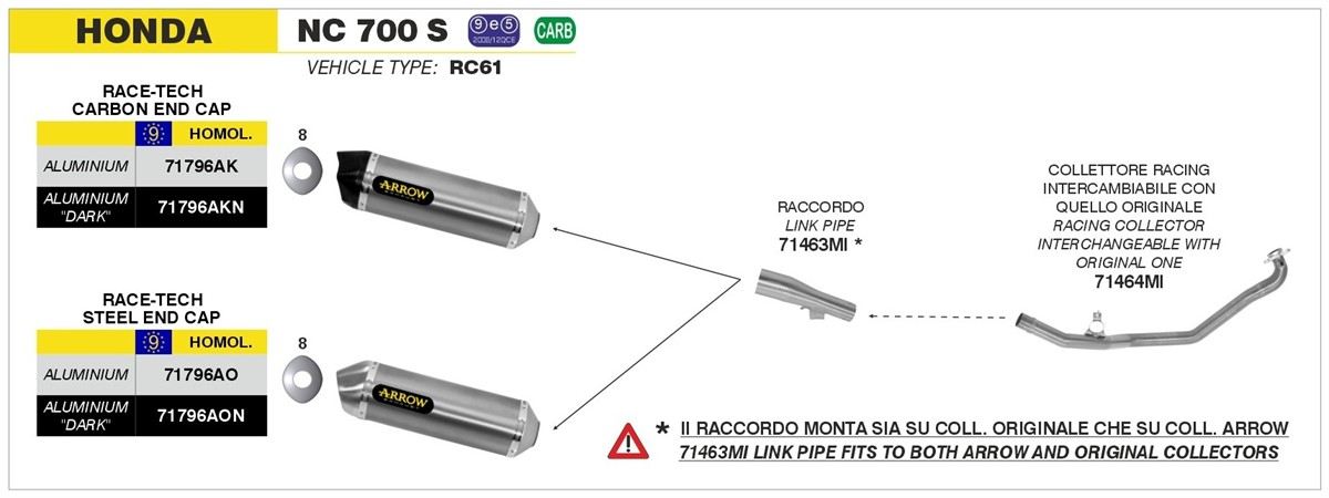 SCHEMA DI MONTAGGIO: nelle foto fare riferimento allo SCHEMA DI MONTAGGIO della propria moto (indicato in alto a sinistra: Modello - Euro - Vehicle Type) e al codice prodotto 71463MI.