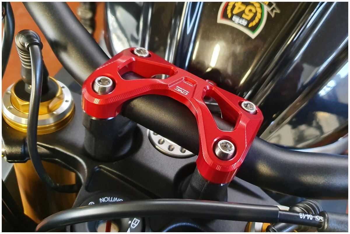 Riser superiore per manubrio originale realizzato in alluminio lavorato dal pieno e successivamente anodizzato superficialmente.