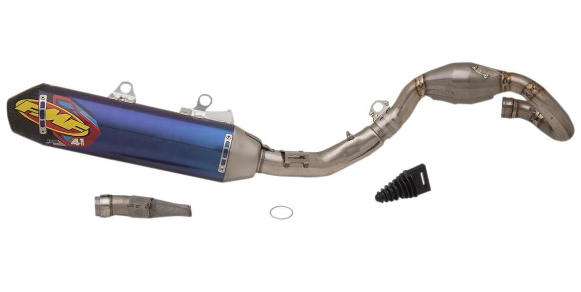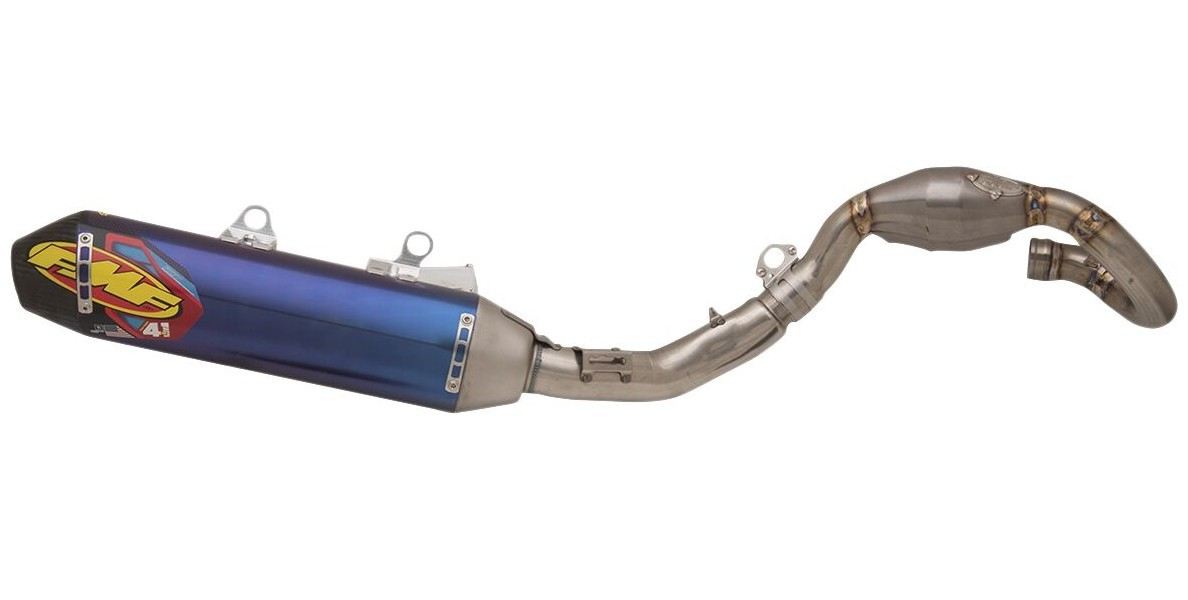 Sistema di scarico Factory 4.1 RCTLa Factory 4.1 RCT integra la Resonance Chamber Technology™ di FMF all’interno e all’esterno Lunghezza complessiva più corta che è meno propensa a danni da urto ed è complementare al Factory Forward Engineering di FMF, spostando il silenziatore più vicino al motore per centralizzare la massa Il Factory 4.1 RCT è esclusivamente in materiali di qualità aerospaziale che soddisfano le specifiche esigenti FMF ed è prodotto al 100% nella loro fabbrica nel sud della California Notevole aumento di potenza nell'intera gamma regimi. Enormi risparmi in termini di peso Nuovo RTS (Rapid Tuning System) Include collettore MegaBomb Include inserto frangifiamma
