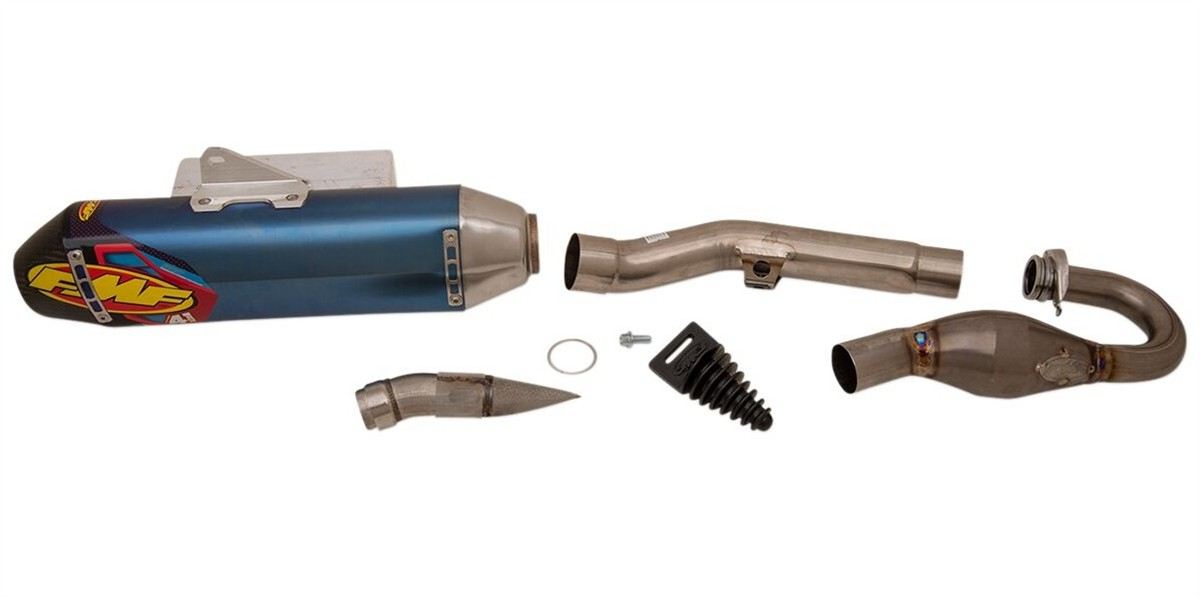 Il sistema di scarico completo Factory 4.1 RCT (silenziatore + collettore) nasce dall'unione dell'omonimo terminale con il collettore PowerBomb. Il terminale, pluripremiato e testato, presenta l'innovativa camera interna RCT (Resonance Chamber Technology), una tecnologia che diminuisce la rumorosità pur mantenendo il massimo della potenza. Il collettore MegaBomb è il meglio che FMF può offrire e assicura un aumento straordinario delle prestazioni, in particolare della potenza ai bassi e medi regimi, fino a 3 cavalli in più rispetto al collettore di serie, diminuendo anche di 1.5db il limite fonometrico. Lo scarico completo FMF è lievemente più corto per ridurre i rischi di danneggiamento in caso di caduta e per migliorare il flusso dei gas.