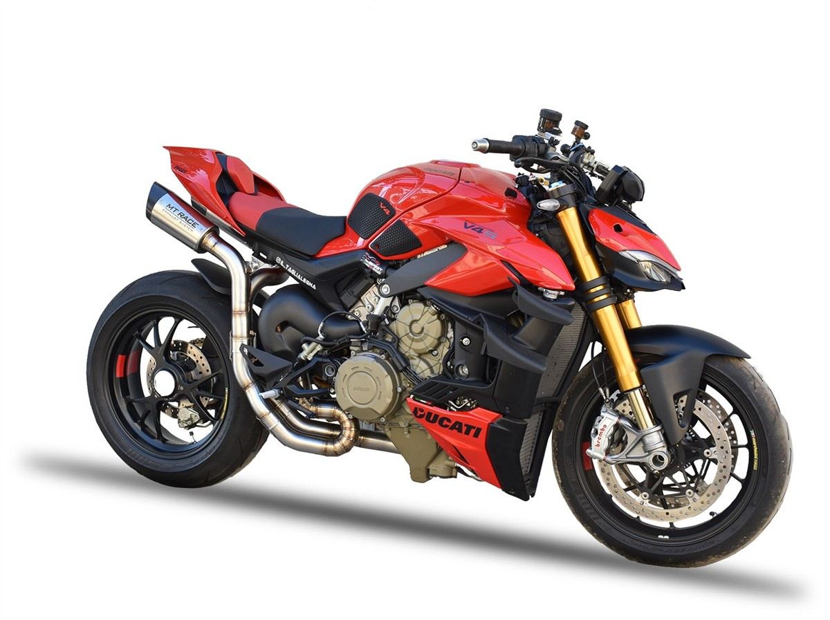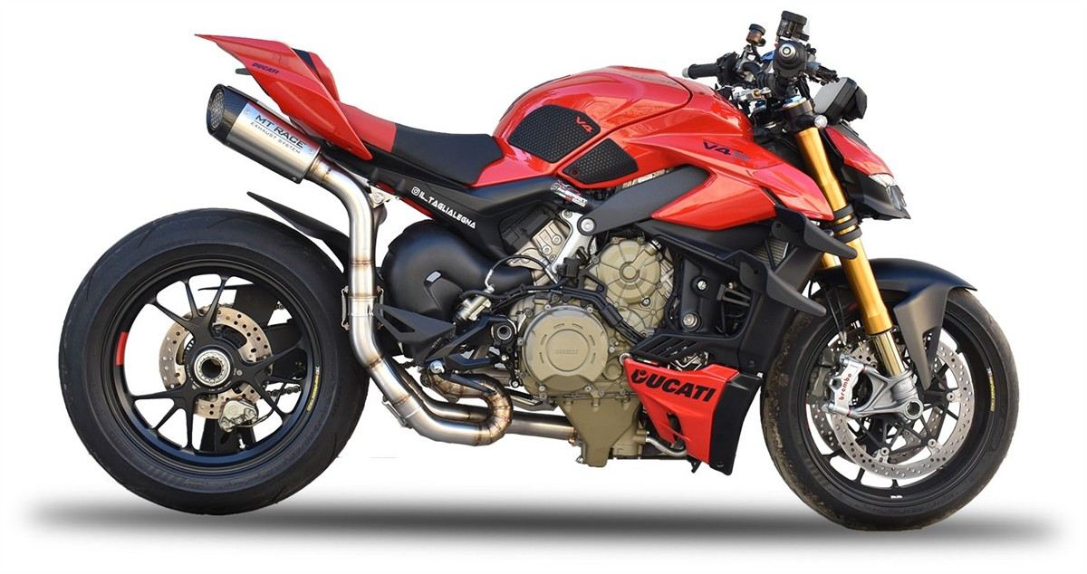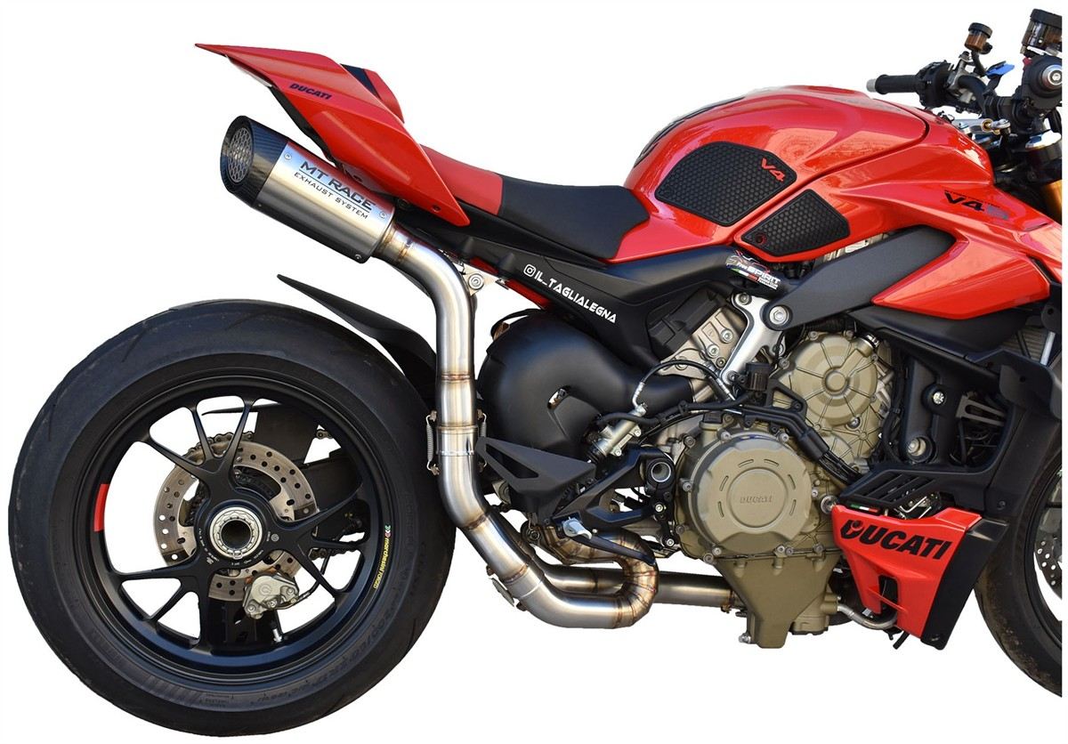 Spedizione GRATIS in ItaliaScarico completo MT RACE GP1R non omologato con collettori in ACCIAIO e terminale in ACCIAIO SATINATO con fondello in CARBONIO per Ducati Panigale V4 20-24