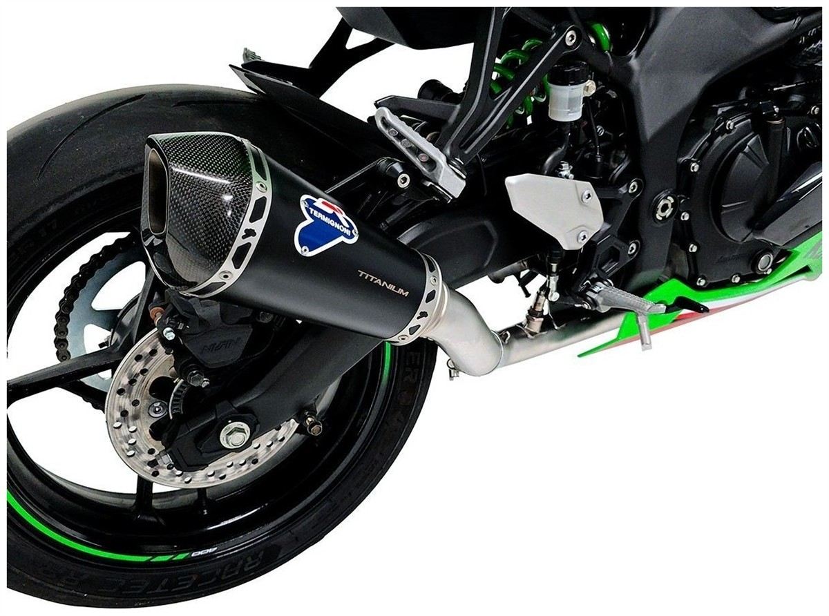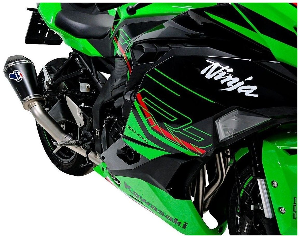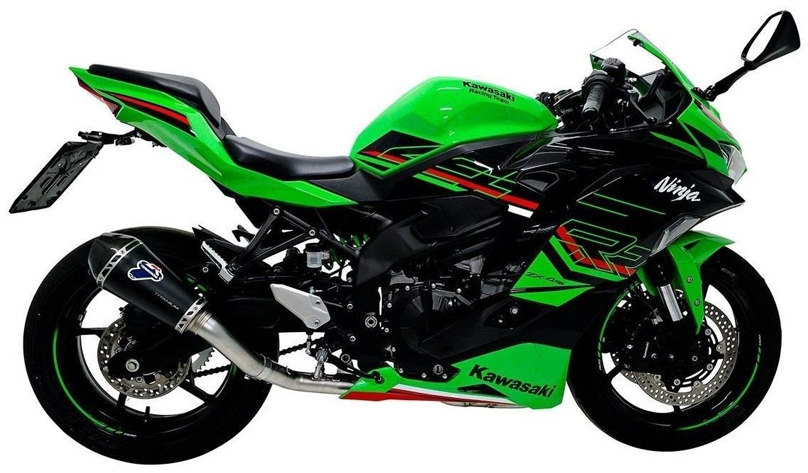 Spedizione GRATIS in ItaliaScarico completo Termignoni non omologato con collettori in acciaio inox e terminale in titanio verniciato nero con fondello in carbonio per Kawasaki ZX-4RR 24-25