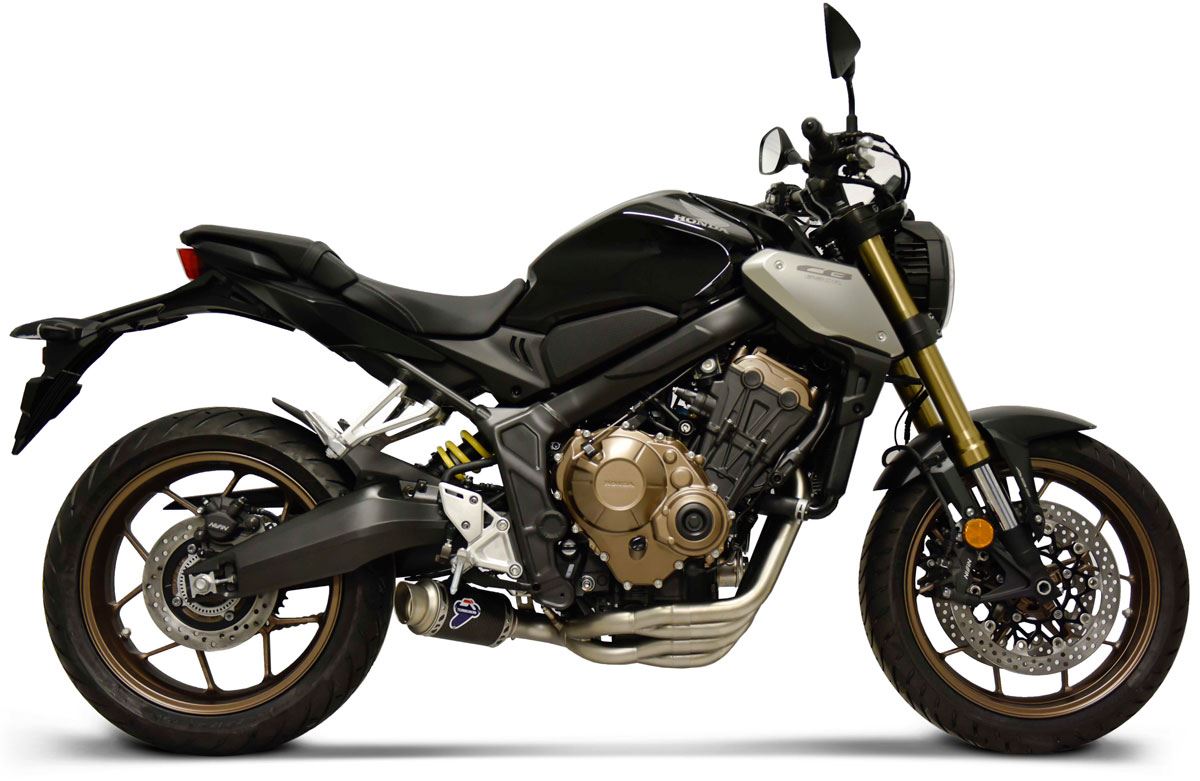 Spedizione GRATIS in ItaliaScarico completo Termignoni non omologato con collettori in acciaio inox e terminale in titanio verniciato nero con fondello in carbonio per Honda CB 650 R 19-26