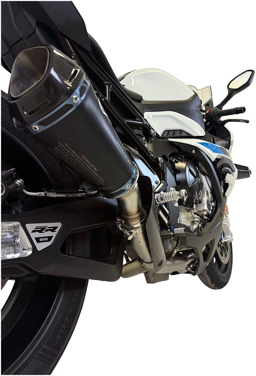 Spedizione GRATIS in ItaliaScarico completo Termignoni non omologato con collettori in acciaio inox e terminale in titanio nero con fondello in alluminio CNC per BMW M 1000 RR 20-25