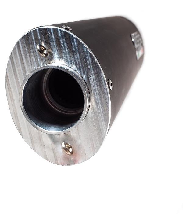 Terminale FURORE NERO, realizzato con fodero in alluminio e fondelli in Avional ricavati mediante lavorazione CNC, verniciato con trattamento per le alte temperature, forma ellittica 90x120