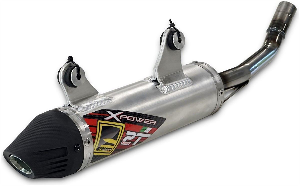 Il silenziatore della linea “XPOWER” riunisce la leggerezza dell’alluminio, la robustezza dell’acciaio inox e la flessibilità del polimero effetto carbonio con cui è realizzato il fondello del terminale. Il tubo in acciaio inox con esterno in alluminio spazzolato.