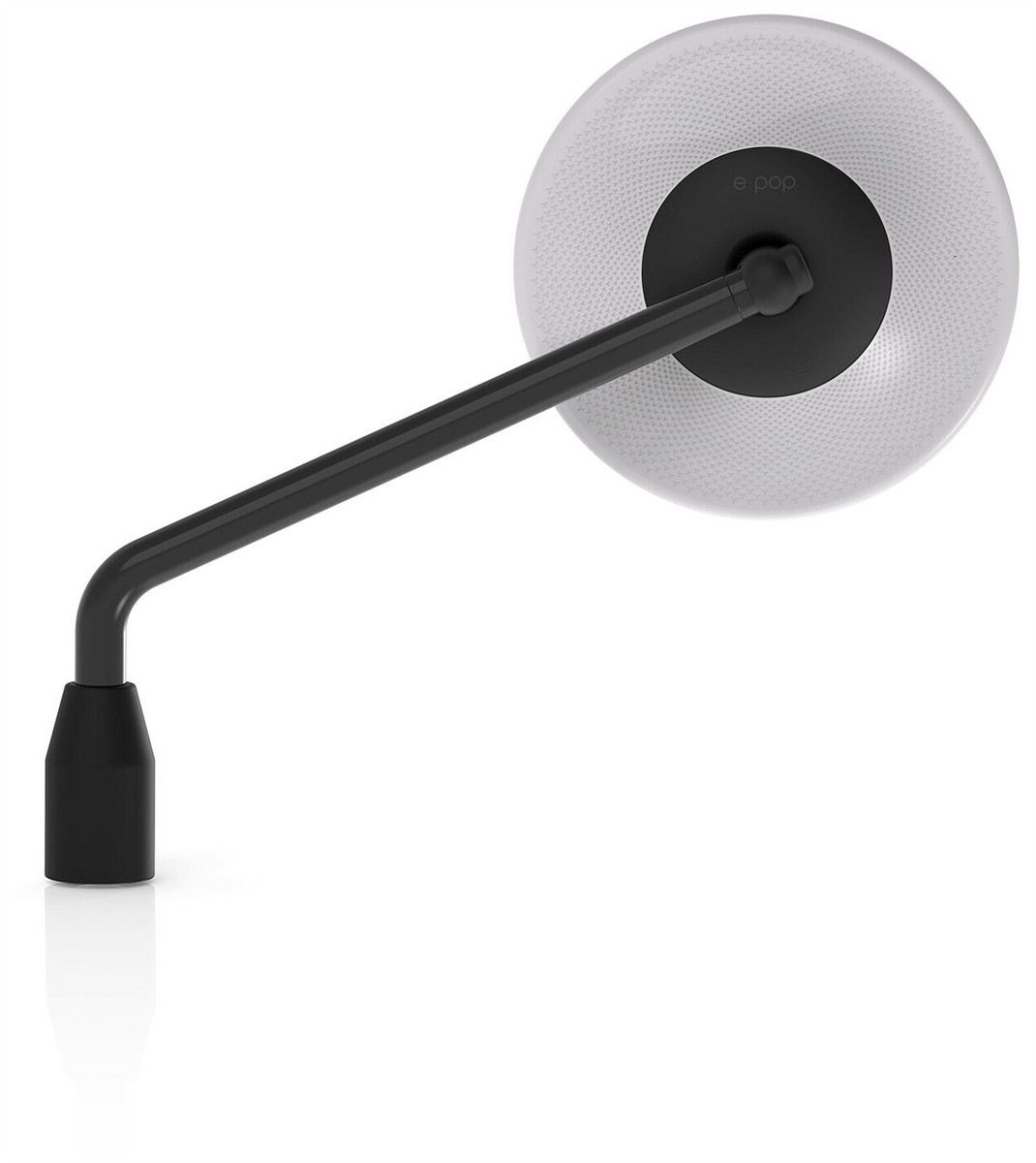 Lo specchio retrovisore e-pop è caratterizzato dall’accostamento di due materiali differenti. Parte strutturale in alluminio ricavata dal pieno tramite lavorazione 3D e corpo specchio in tecnopolimero con texture Altera. Altera Texture si ispira alla struttura molecolare di Allumina, DNA di Rizoma, e la sua rappresentazione grafica simboleggia un ampio percorso di evoluzione e apertura a nuovi prodotti e materiali.L’uso di due materiali diversi, oltre a renderlo accattivante, ne limita il peso.Disponibile in cinque colori pop: Black, Lime, Magenta, Ciano e Neutral.L'ampia superficie riflettente, conforme agli standard omologativi europei, garantisce un'ottima visuale.Per l’installazione è necessario il kit di montaggio incluso nel kit e-pop.Due possibilità di installazione: e-pop è biposizione e può essere installato sia sul lato destro che sinistro, con asta e specchio rivolti verso l’alto rispetto alla linea del manubrio, o al contrario, con asta rivolta verso il basso rispetto alla linea del manubrio.