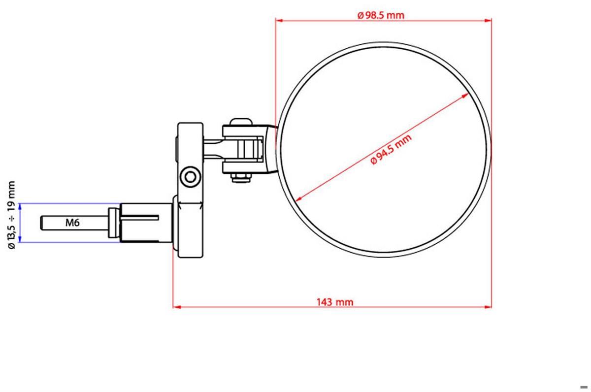 La superficie dello specchio ha un diametro di 94.5mm. e può essere montato indifferentemente in posizione alta o bassa.