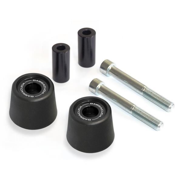 Il KIT TAMPONI BARRACUDA è venduto in set ( dx-sx ), ed è completo di tutto il necessario per il montaggio. I TAMPONI vengono forniti con la testa in PVC nero + distanziali in alluminio anodizzato + bulloneria specifica e si montano senza alcuna modifica alle parti originali. Istruzioni di montaggio figurate comprese.