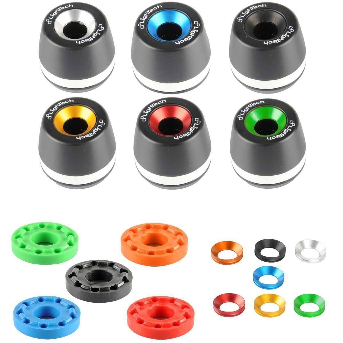 I tamponi vengono forniti di serie con il gommino shock nero e l'anellino esterno in ergal nero. Puoi scegliere però nelle opzioni prodotto se aggiungere i gommini e gli anellini in ergal colorati che vengono venduti a parte, così da abbinarli al resto della tua moto.