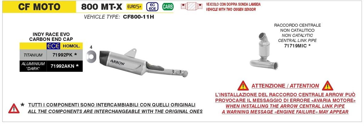 Terminale di scarico Arrow Indy Race EVO titanio con fondello carby omologato per CFMoto 800 MT-X Alta 2025