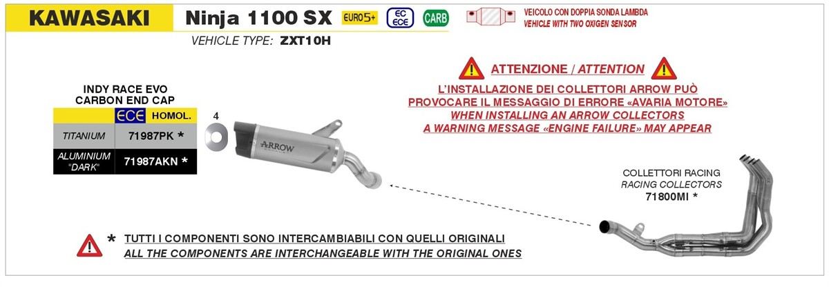 Terminale di scarico Arrow Indy Race EVO titanio con fondello carby omologato per Kawasaki Ninja 1100 SX 2025