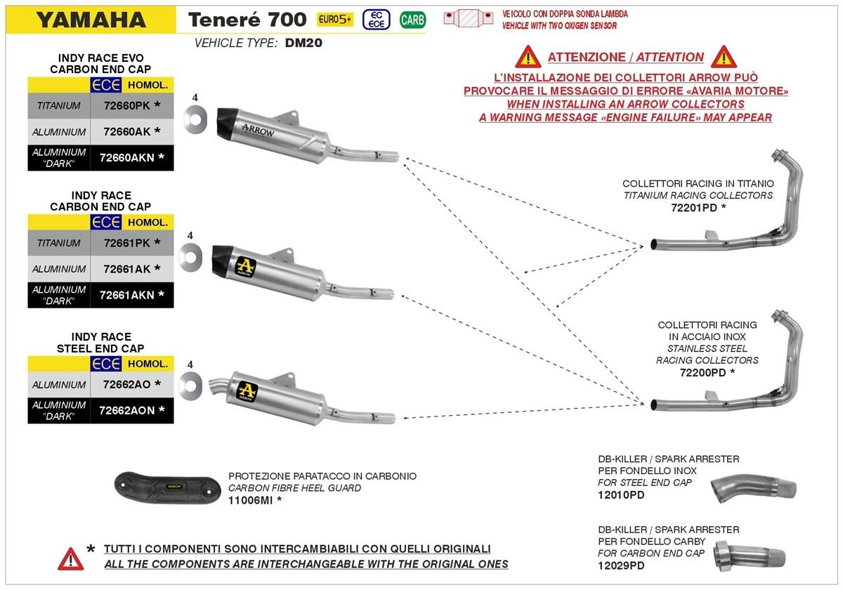 Spedizione GRATIS in ItaliaTerminale di scarico Arrow Indy-Race EVO in titanio con fondello carby omologato per Yamaha Ténéré 700 2025