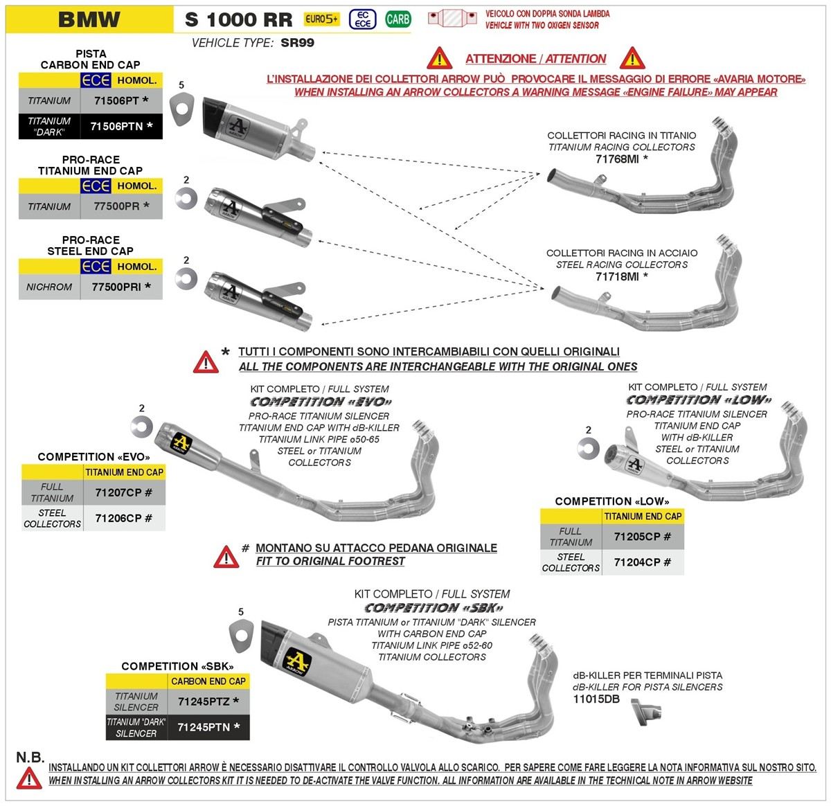 Terminale di scarico Arrow Pro-Race nichrom omologato per BMW M 1000 RR 2025