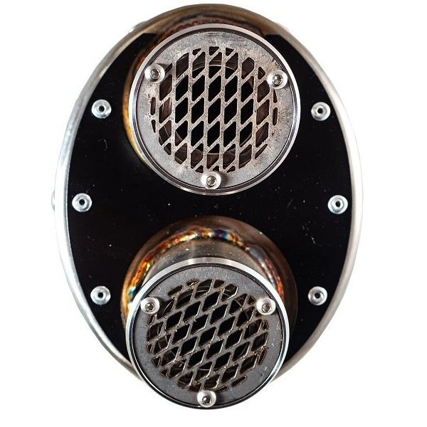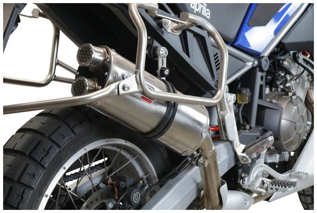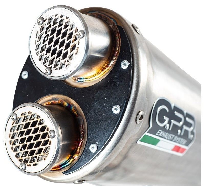Terminale DUAL inox, realizzato con fodero in vero inoxio e fondello con doppia uscita,un look classico ma rigenerato da GPR! forma ellittica 100x130, il top per le moto enduro e gran turismo.