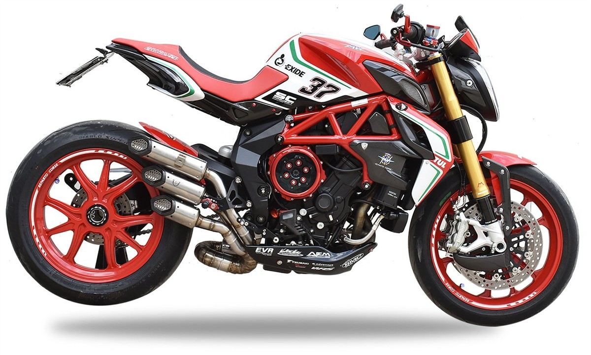 Spedizione GRATIS in ItaliaTerminale di scarico MT RACE 3 CANNE omologato in TITANIO ANODIZZATO con fondello in CARBONIO per MV Agusta Dragster 800 14-17