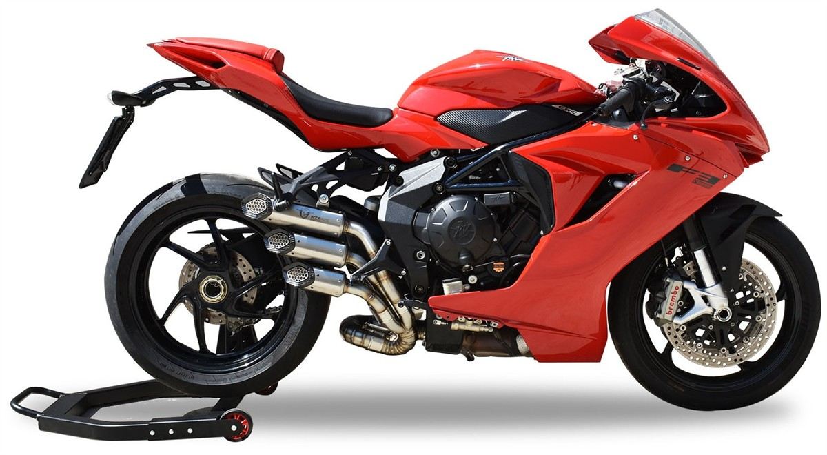 Spedizione GRATIS in ItaliaTerminale di scarico MT RACE 3 CANNE omologato in ACCIAIO SATINATO con fondello in CARBONIO per MV Agusta F3 800 18-25