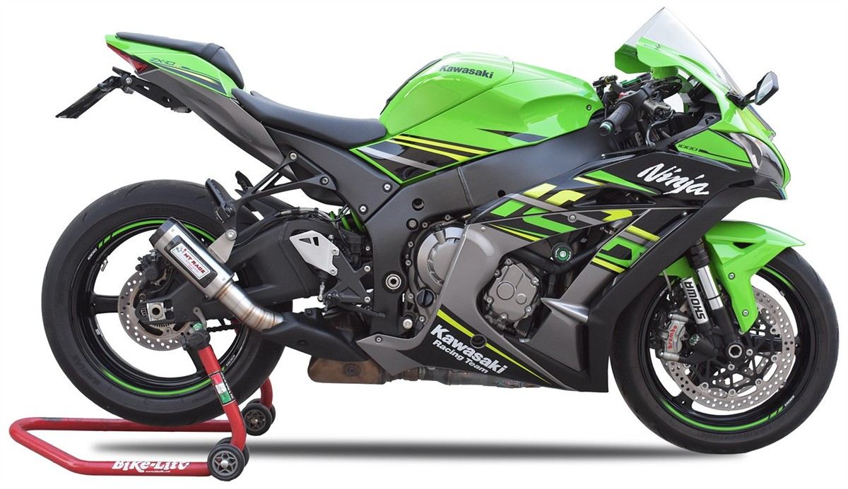Spedizione GRATIS in ItaliaTerminale di scarico con tubo eliminina catalizzatore MT RACE GP-3 non omologato in ACCIAIO SATINATO con fondello in CARBONIO per Kawasaki ZX-10R 15-20