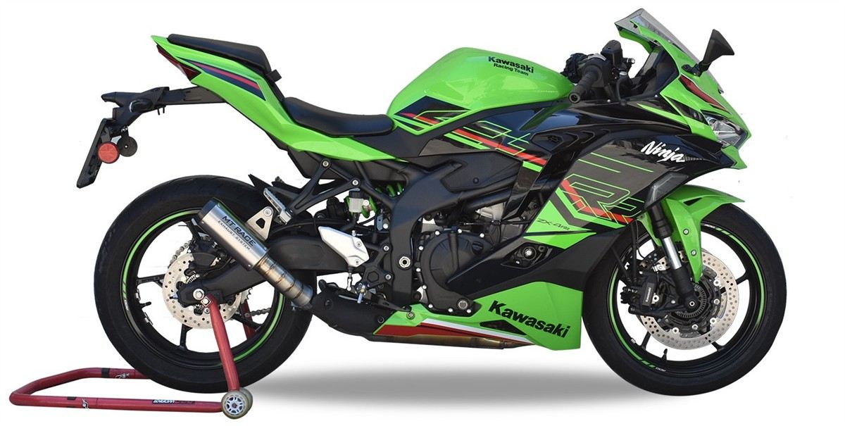 Spedizione GRATIS in ItaliaTerminale di scarico MT RACE GP-2 omologato in ACCIAIO SATINATO con fondello in CARBONIO per Kawasaki ZX-4RR 23-25