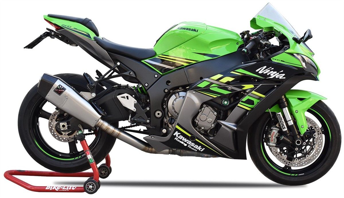 Spedizione GRATIS in ItaliaTerminale di scarico con tubo eliminina catalizzatore MT RACE GP-2 non omologato in TITANIO SATINATO con fondello in CARBONIO per Kawasaki ZX-10R 15-20