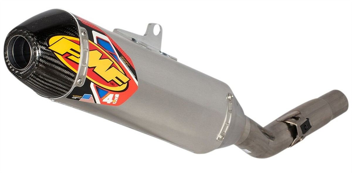 Il silenziatore per moto 4 tempi Factory 4.1 RCT è il top che può offrire FMF nel campo degli scarichi per le migliori moto da cross/enduro 4 tempi sul mercato. Il terminale, pluripremiato e testato, presenta l'innovativa camera interna RCT (Resonance Chamber Technology), una tecnologia che diminuisce la rumorosità pur mantenendo il massimo della potenza. I silenziatori Factory 4.1 RCT sono disponibili con il corpo in acciaio inossidabile, alluminio o titanio con finitura naturale o blu anodizzato, con il fondello che può essere o in titanio o in fibra di carbonio.