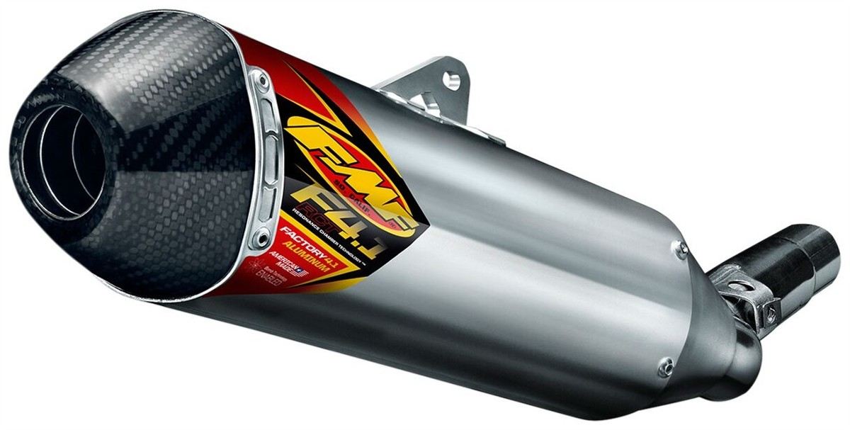 Il silenziatore per moto 4 tempi Factory 4.1 RCT è il top che può offrire FMF nel campo degli scarichi per le migliori moto da cross/enduro 4 tempi sul mercato. Il terminale, pluripremiato e testato, presenta l'innovativa camera interna RCT (Resonance Chamber Technology), una tecnologia che diminuisce la rumorosità pur mantenendo il massimo della potenza. I silenziatori Factory 4.1 RCT sono disponibili con il corpo in acciaio inossidabile, alluminio o titanio con finitura naturale o blu anodizzato, con il fondello che può essere o in titanio o in fibra di carbonio.