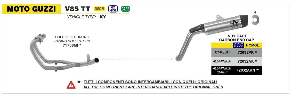Spedizione GRATIS in ItaliaTerminale di scarico Arrow Indy Race titanio con fondello carby omologato per Moto Guzzi V85 TT 19-23