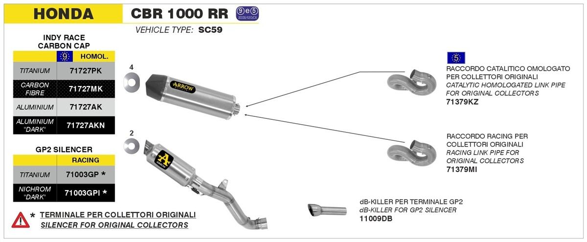Spedizione GRATIS in ItaliaTerminale di scarico Arrow Indy Race alluminio con fondello carby omologato per Honda CBR 1000 RR 08-13