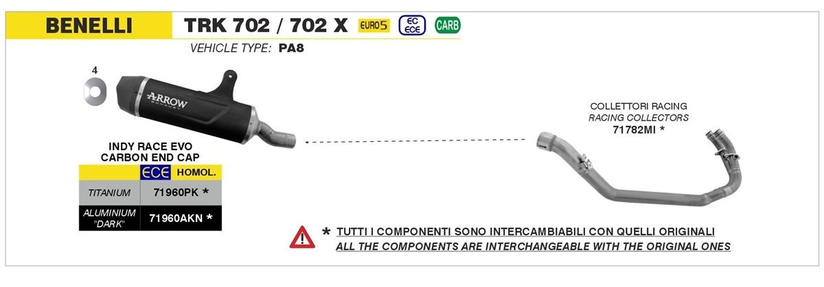 Terminale di scarico Arrow Indy Race EVO titanio con fondello carby omologato per Benelli TRK 702 23-24