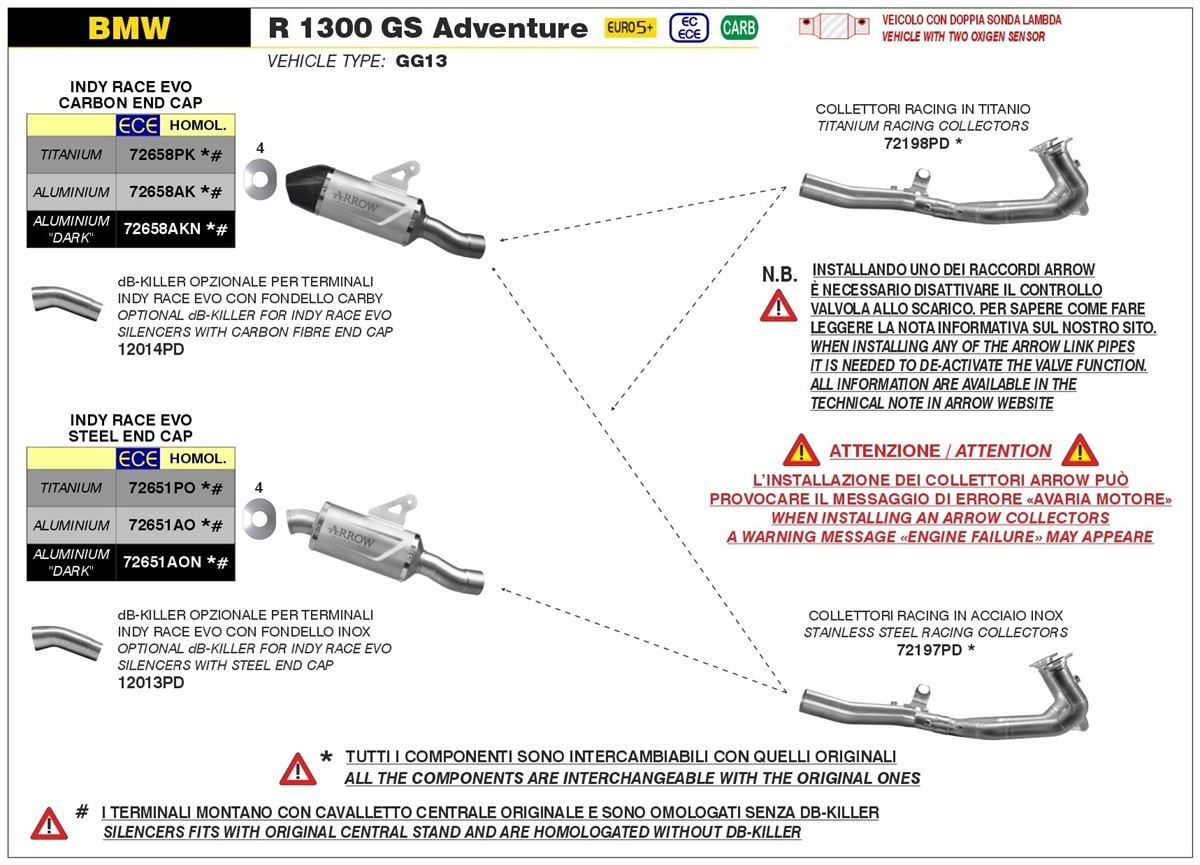 Spedizione GRATIS in ItaliaTerminale di scarico Arrow Indy Race EVO titanio con fondello carby omologato per BMW R 1300 GS 24-25