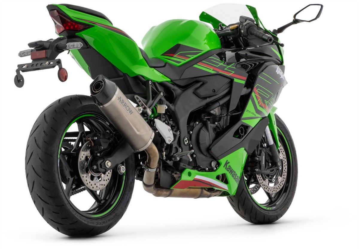 Terminale di scarico Arrow Indy Race EVO alluminio Dark con fondello carby omologato per Kawasaki ZX-4R 24-25
