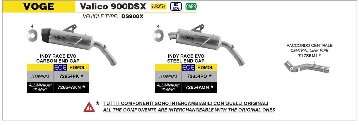 Spedizione GRATIS in ItaliaTerminale di scarico Arrow Indy Race EVO titanio con fondello carby omologato per Voge Valico 900 DSX 2024