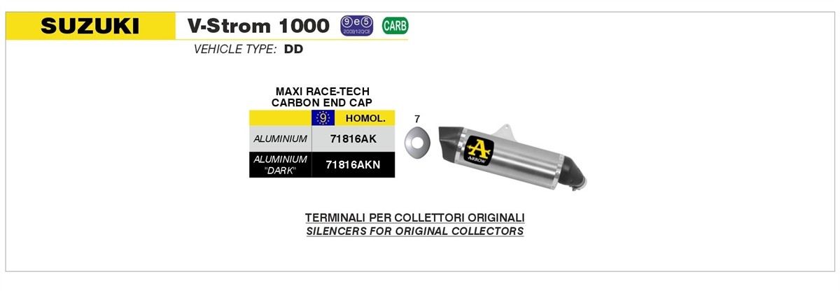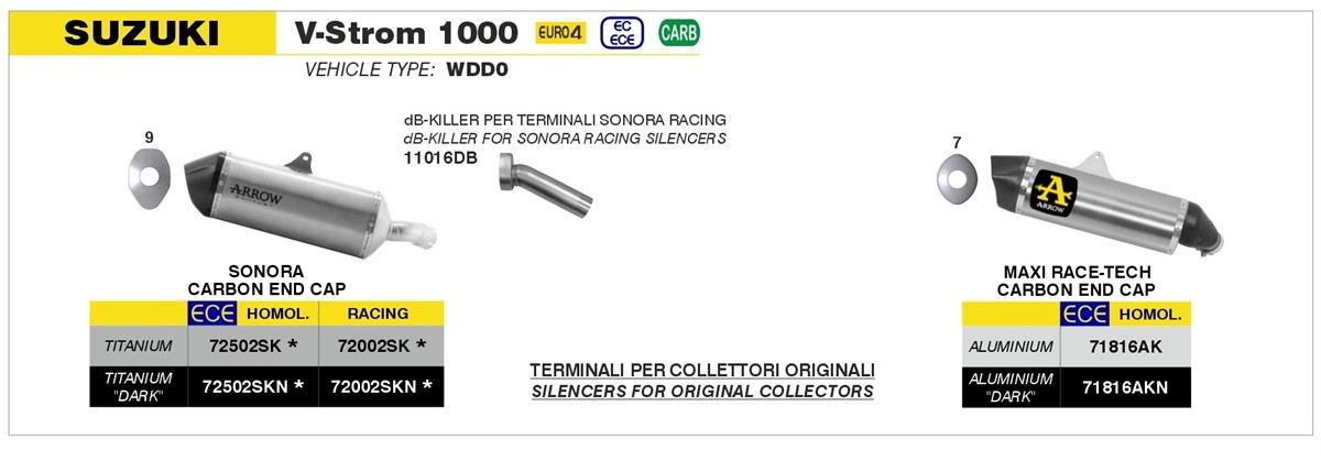 Spedizione GRATIS in ItaliaTerminale di scarico Arrow Sonora titanio Dark con fondello carby omologato per Suzuki V-Strom 1000 17-20