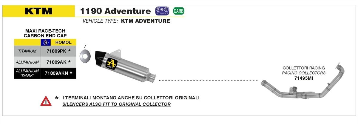Spedizione GRATIS in ItaliaTerminale di scarico Arrow Maxi Race-Tech alluminio Dark con fondello carby omologato per KTM 1190 Adventure 13-16