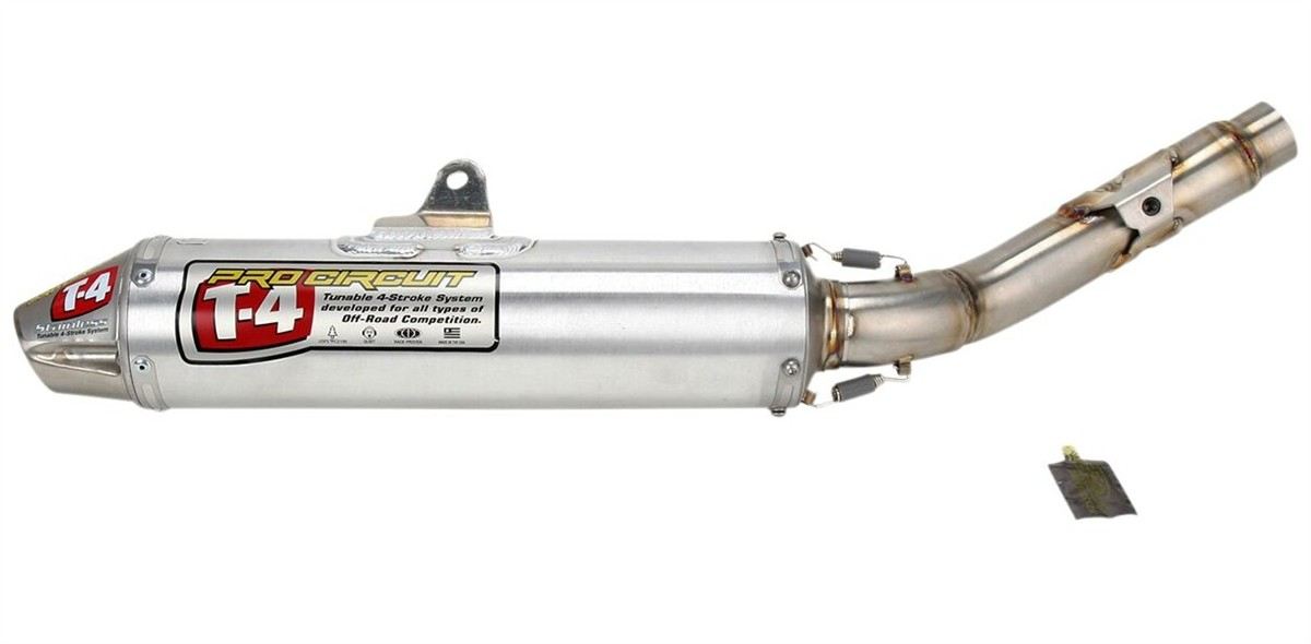 Silenziatore slip-on T-4Progettato per essere utilizzato con collettori OEM di serie o collettori Pro Circuit Prestazioni ultra-responsive Incredibili incrementi di potenza rispetto alla versione di serie Sviluppati per aumentare la potenza e la coppia attraverso la curva di potenza Struttura in alluminio/acciaio inossidabile per ridurre il peso e aumentare la durata Solide staffe di montaggio per una maggiore durata Progettato per un facile smontaggio e reimballaggio se necessario Frangifiamma rimovibile approvato dall’USFS (Servizio Forestale degli Stati Uniti)